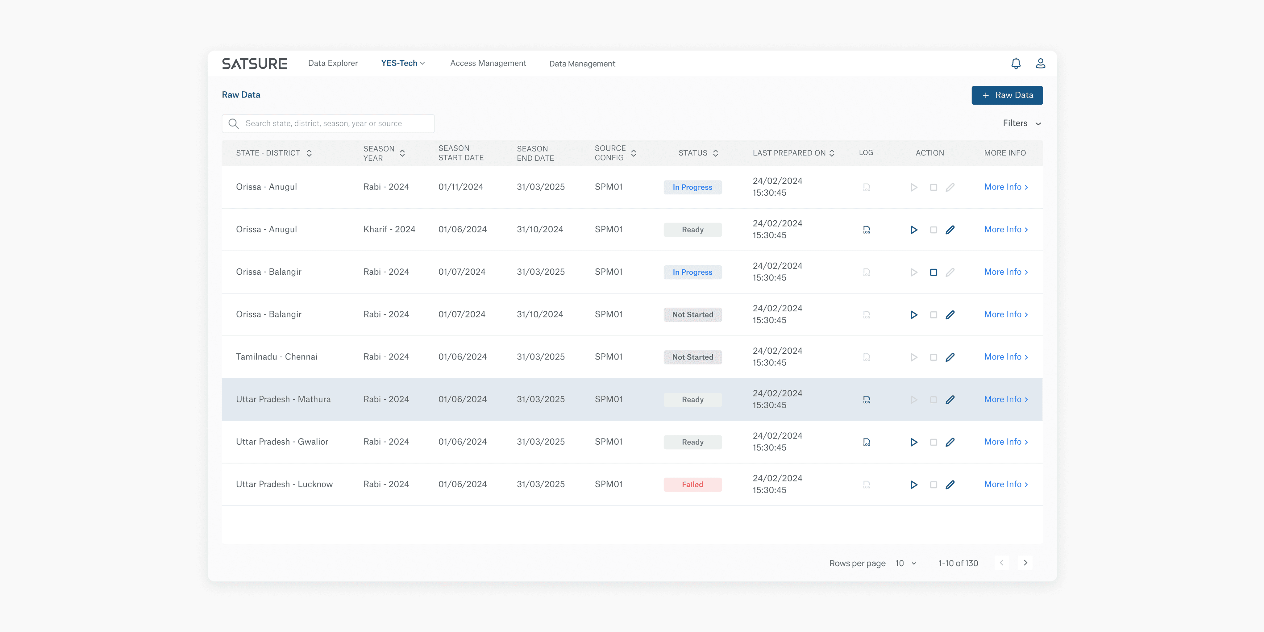 In this step, clean the data and initiate raw data preparation by adding raw data for a specific combination of region, season, and source configuration.