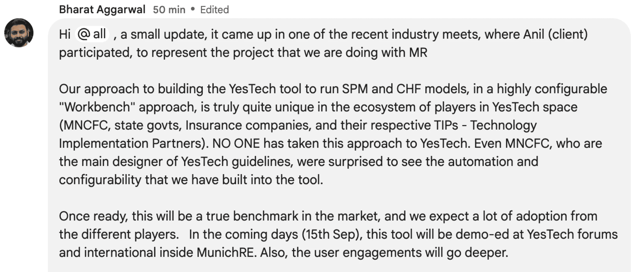 💬 India’s first digitised YES-Tech platform. Praised by both clients and MNCFC (guideline creators) for configurability and transparency